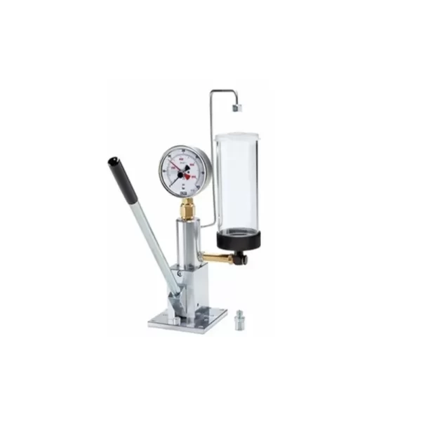 Bomba manual, calibrador de inyectores mecánicos. En combinación con equipo simulador MM03 CR TEST, permite hacer prueba de pulverización de inyectores Common Rail.
